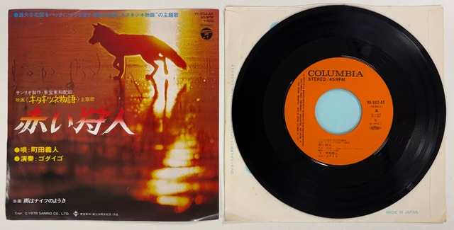 発売年:1978年 レーベル:日本コロムビア(YK-502-AX) ジャケ:EX-(画像参照) 盤:EX BPM:116 2013年リリースの和ラダイスガラージDJ MIX VOL.3「熱い吐息のメロディ」収録の和ラのフロアで大人気の一曲。作曲:タケカワユキヒデ、編曲:ミッキー吉野によるグルーヴィーでダンサブルな一枚。映画「キタキツネ物語」サントラ。MIX CD7インチシングルはクリックポストで6〜7枚まで同梱できます(185円)。 【YouTube動画】 https://www.youtube.com/watch?v=vUUVqwqcXAg&list=RDvUUVqwqcXAg&start_radio=1