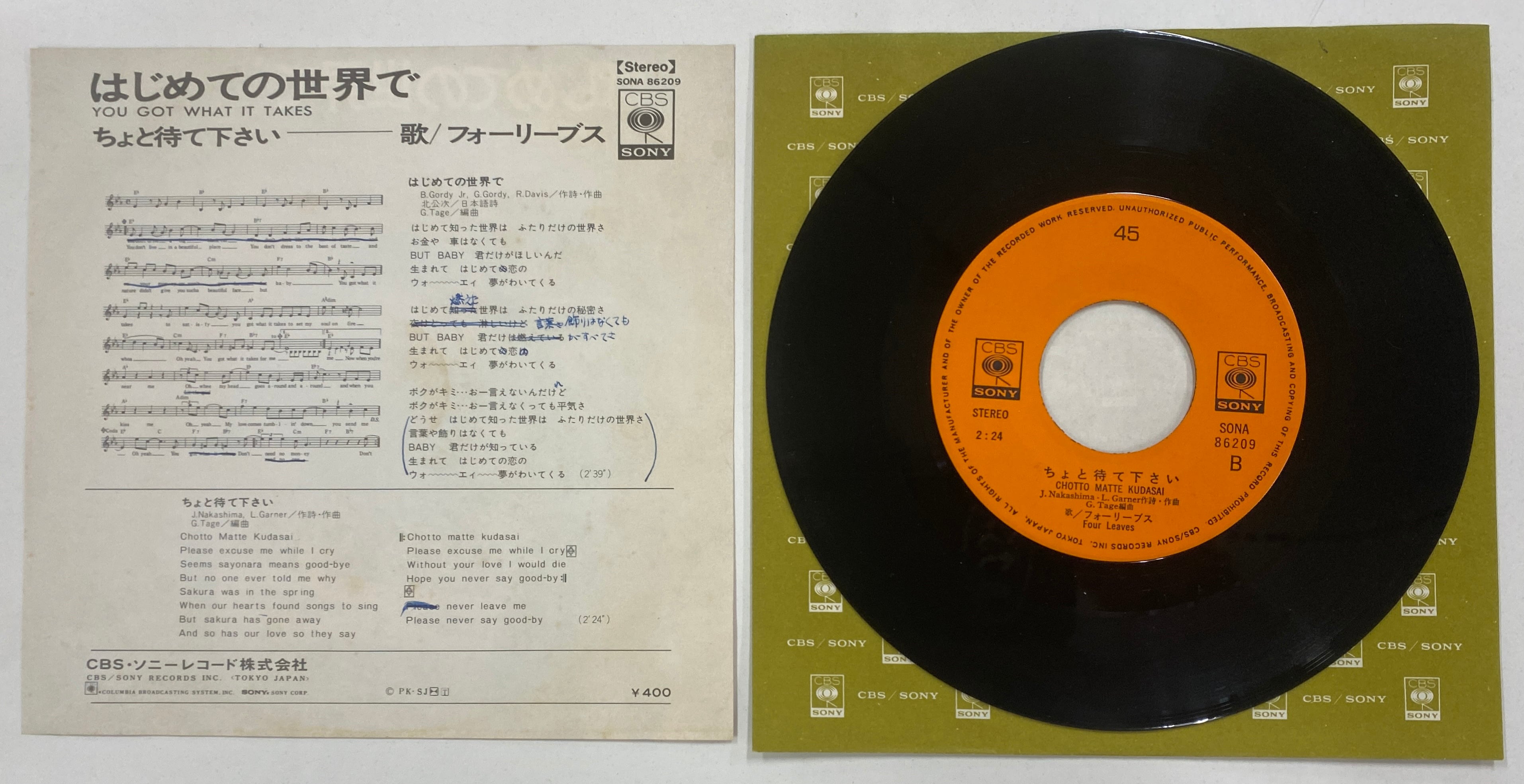 レーベル:CBSソニー(SONA 86209)
