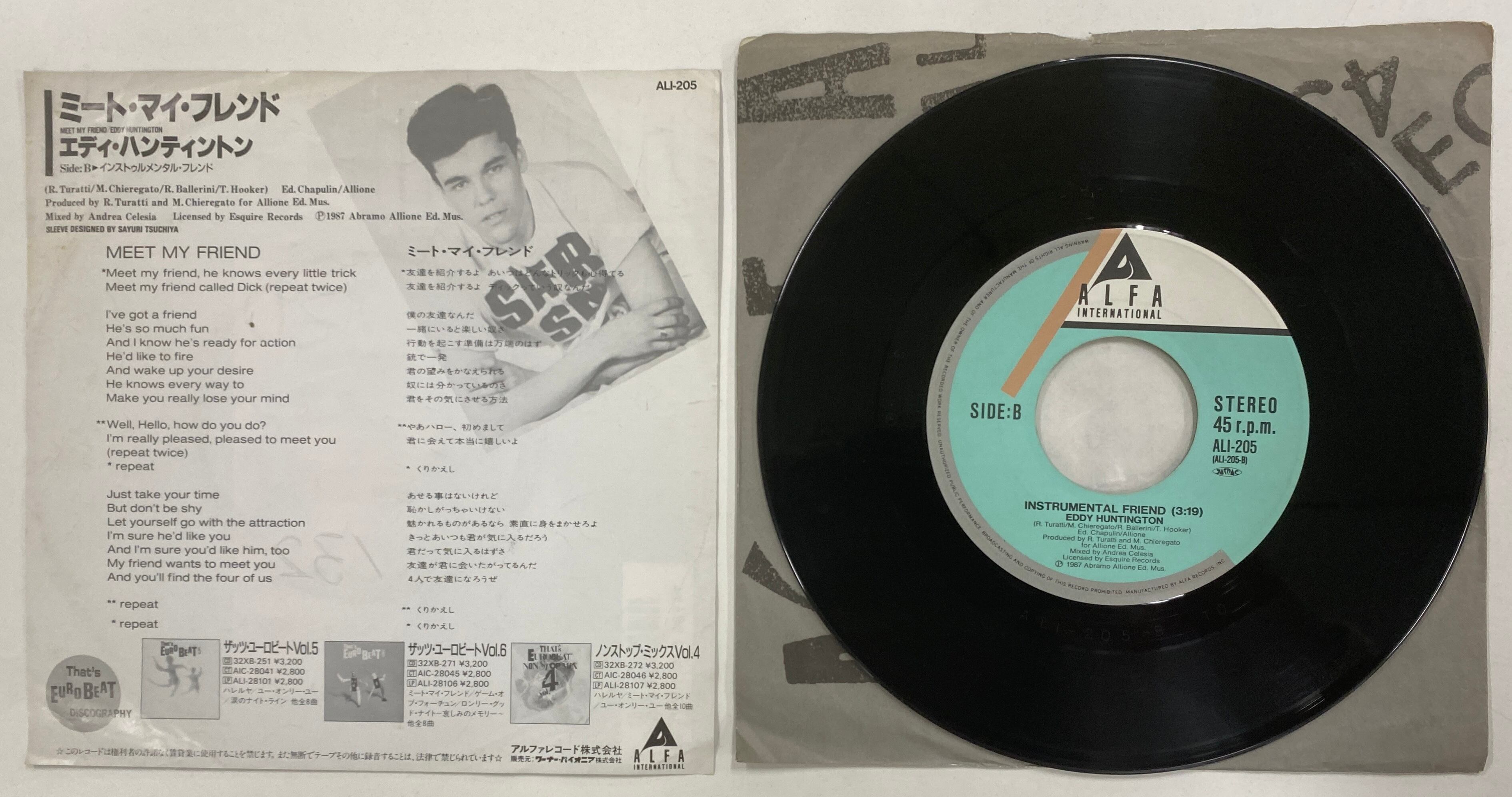EDDY HUNTINGTON(エディ・ハンティントン)/MEET MY FRIEND【日本盤・7インチ】1987年リリースの大ヒット・ユーロビート!東亜会館
