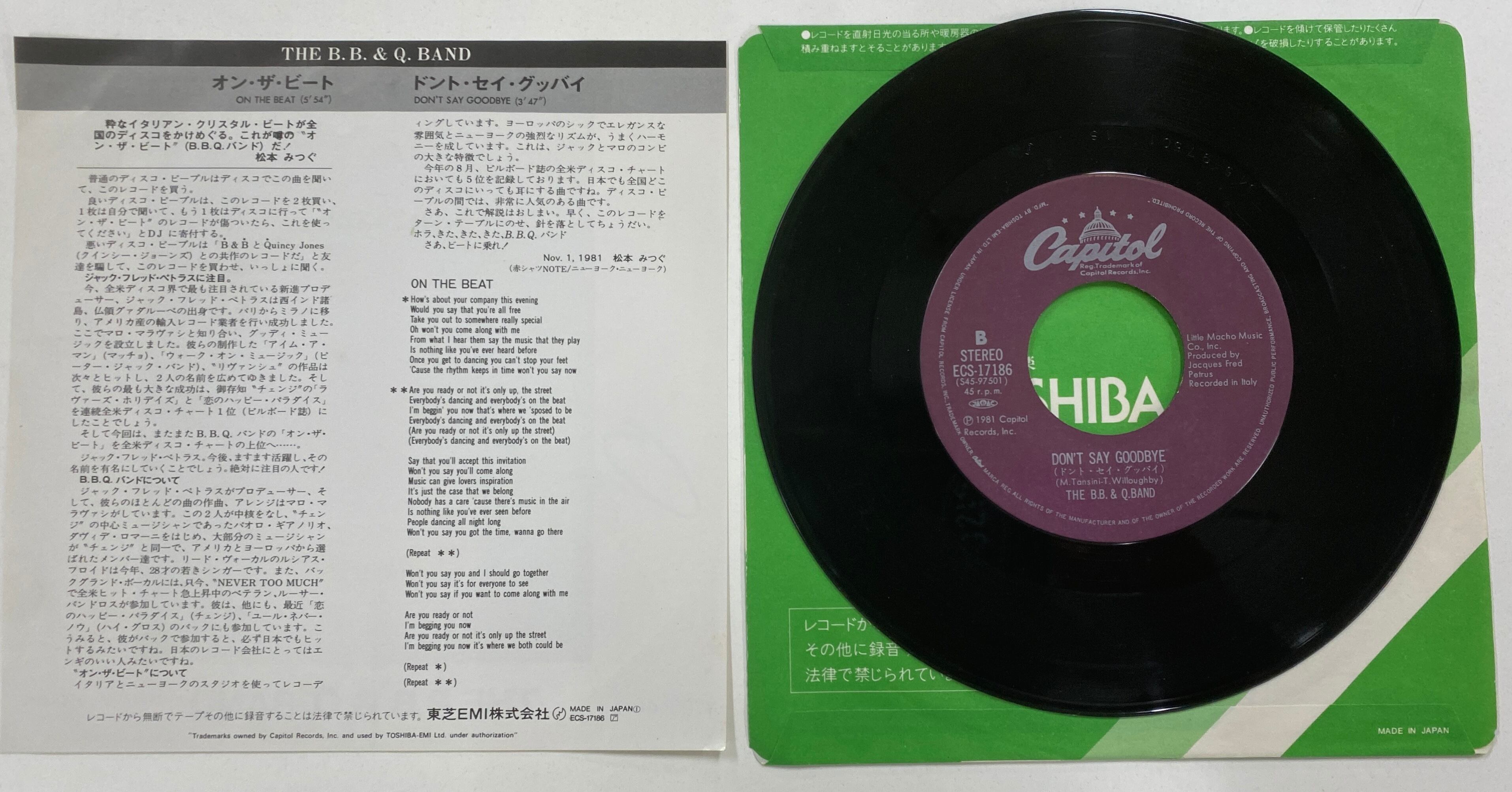 THE B.B. & Q. BAND/ON THE BEAT【日本盤・7インチ】ダンクラ名曲!イタリア発のアーバンディスコ!