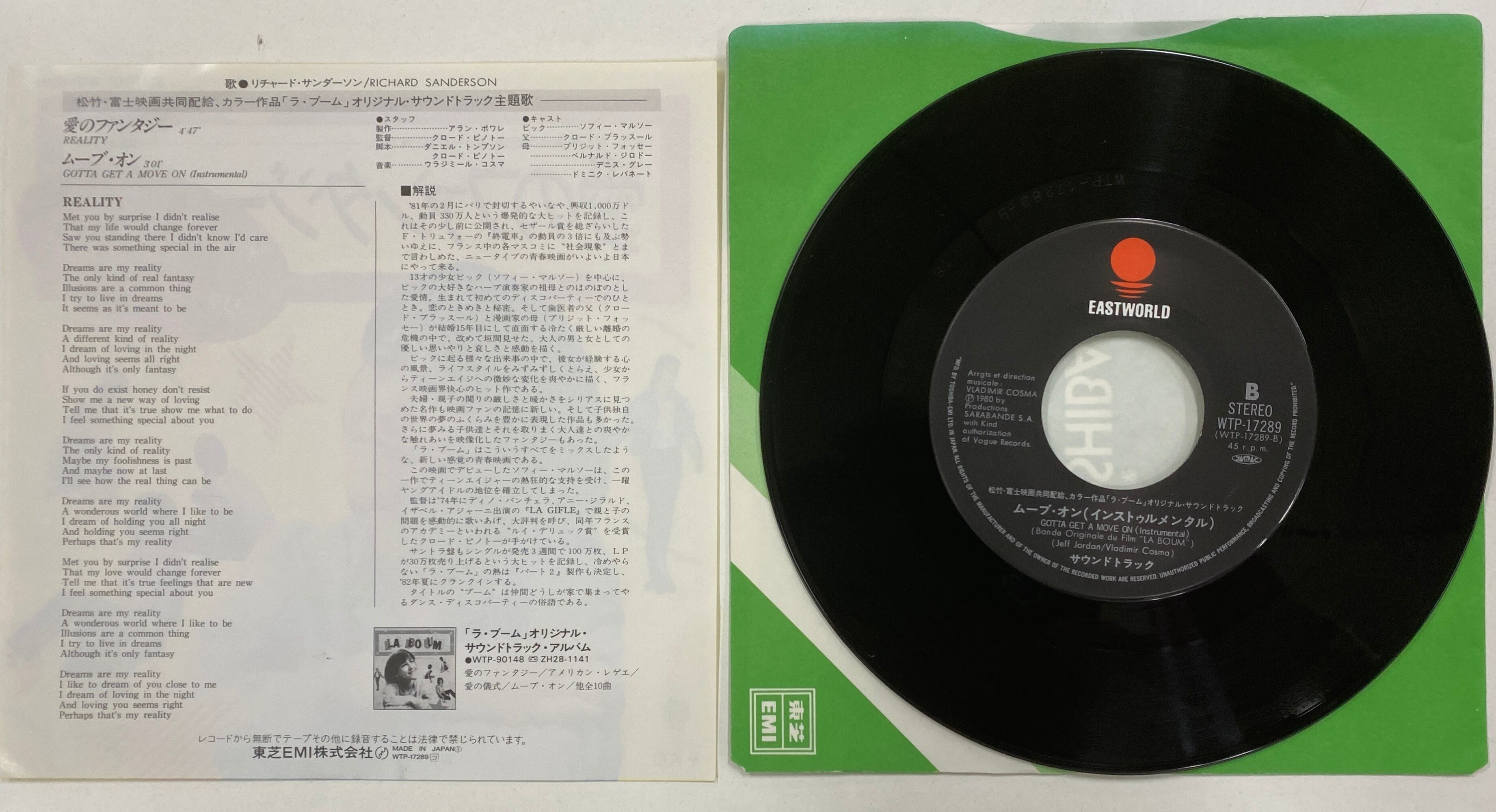 RICHARD SANDERSON(リチャード・サンダーソン)/REALITY(愛のファンタジー)【日本盤・7インチ】ソフィー・マルソー主演映画「ラ・ブーム」主題歌!チークタイムの定番曲!