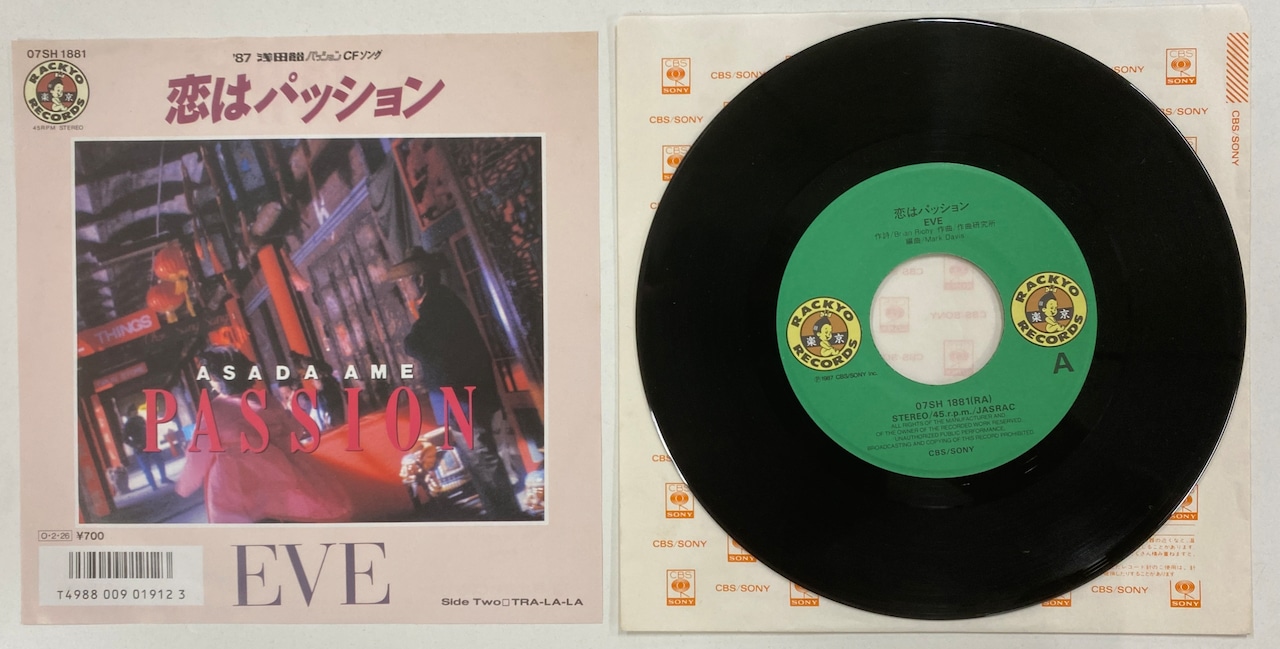 EVE「恋はパッション/TRA-LA-LA」【7インチ】和製ディスコ!「浅田飴パッション」CM曲●東亜会館でも大人気!