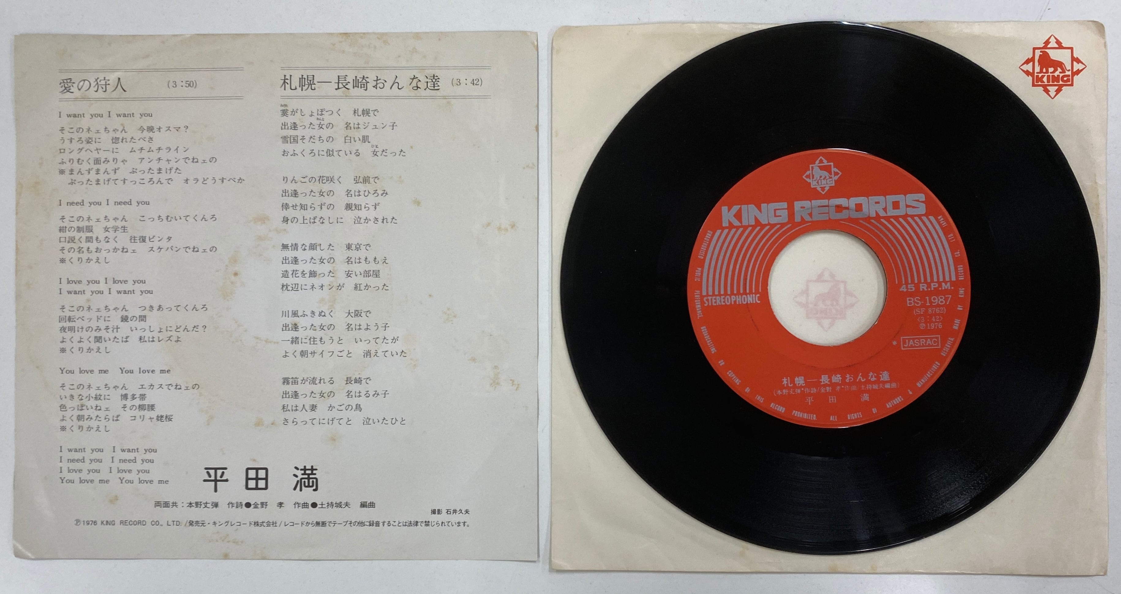 平田満/愛の狩人【7インチ】ファンキーなオケに東北弁ラップの和モノ人気盤!