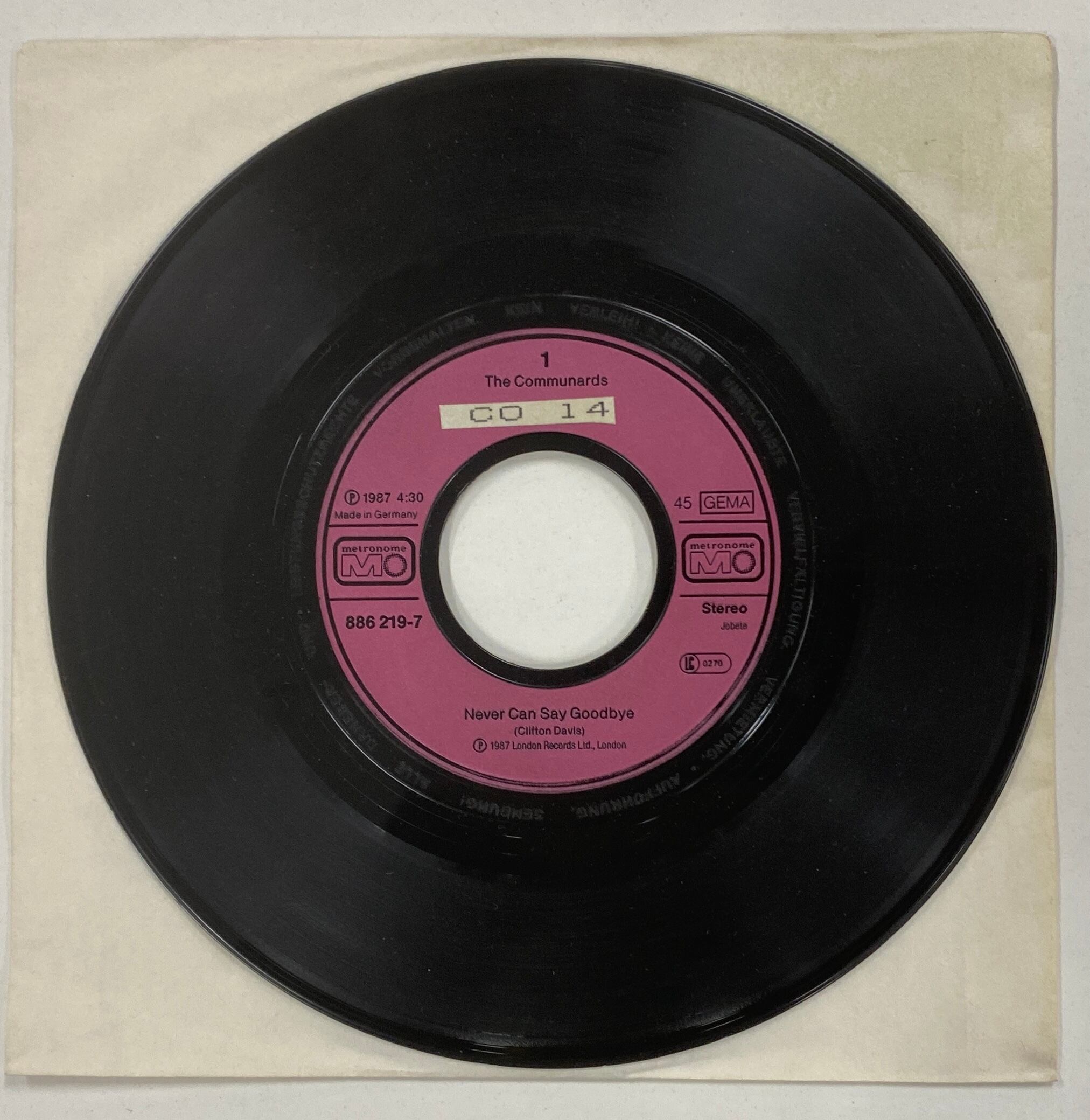 THE COMMUNARDS/NEVER CAN SAY GOODBYE(さよならは言わないで)【ドイツ盤・7インチ】Jackson 5 の名曲をHi-NRGカバー!1987年大ヒット!
