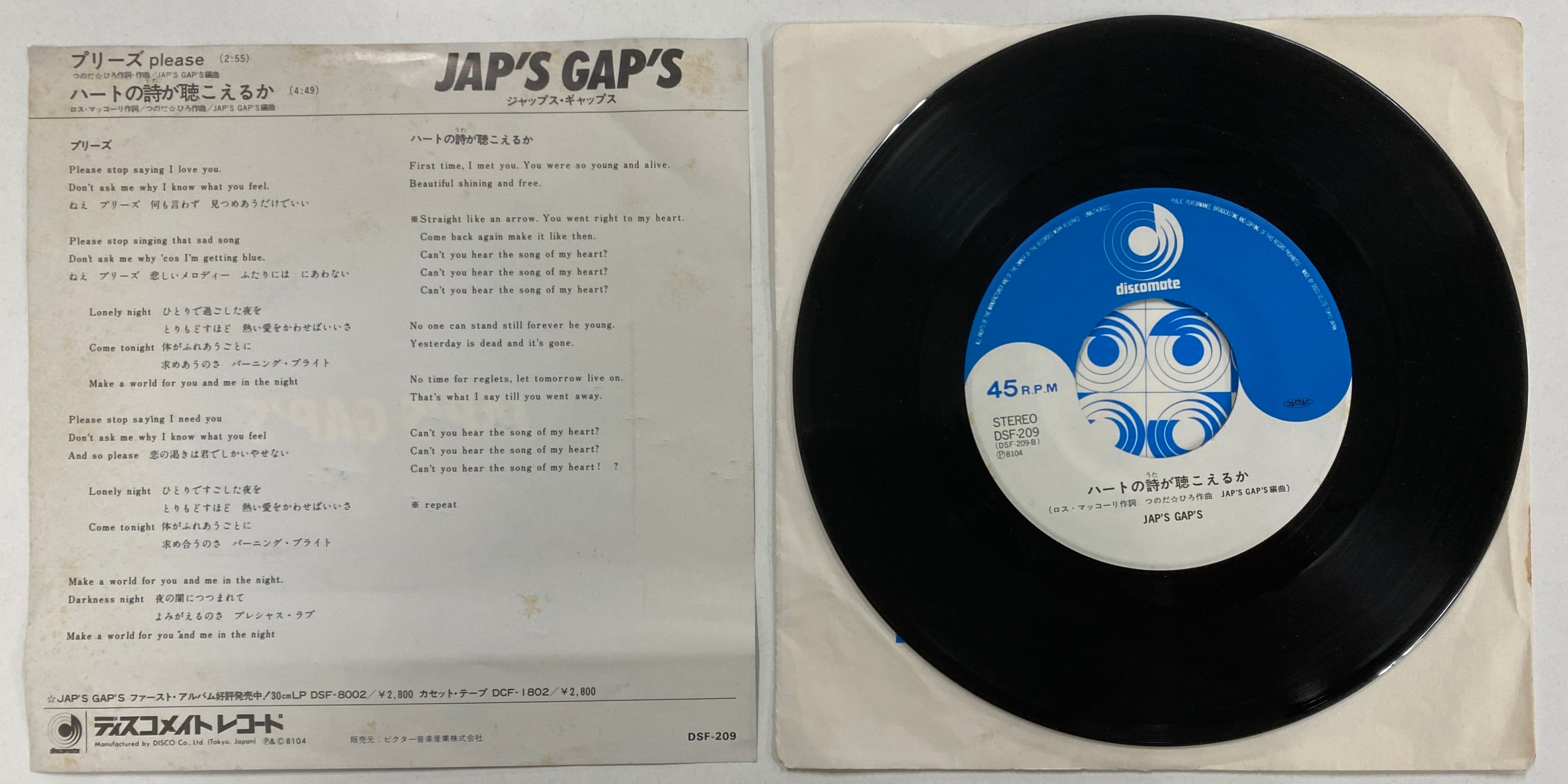 JAP’S GAP’S(つのだ☆ひろ)/PLEASE【7インチ】#中村保夫MIX収録 #和モノ・クラシック