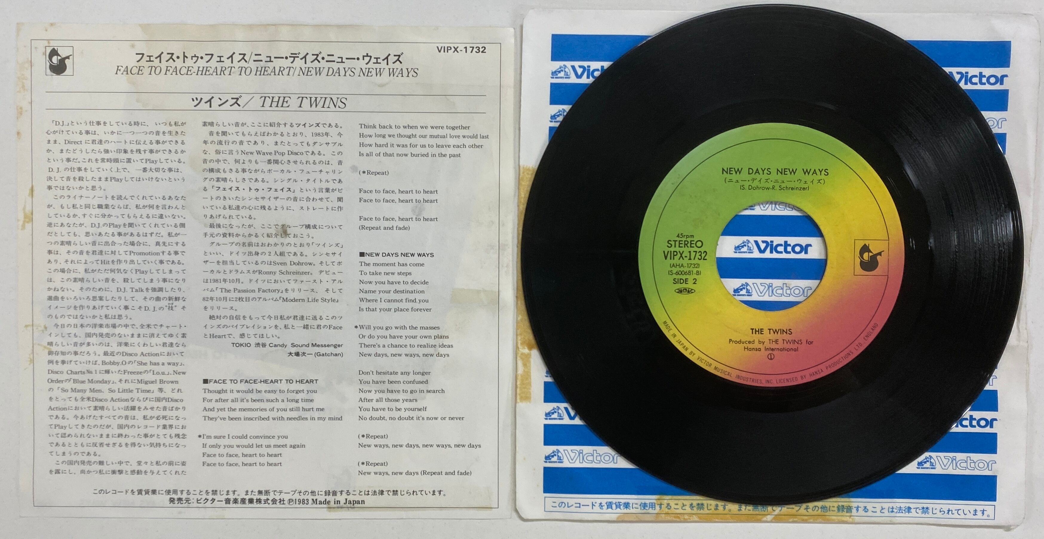 THE TWINS/FACE TO FACE HEART TO HEART(フェイス・トゥ・フェイス)【日本盤・7インチ】大ヒットHi-NRG #東亜会館