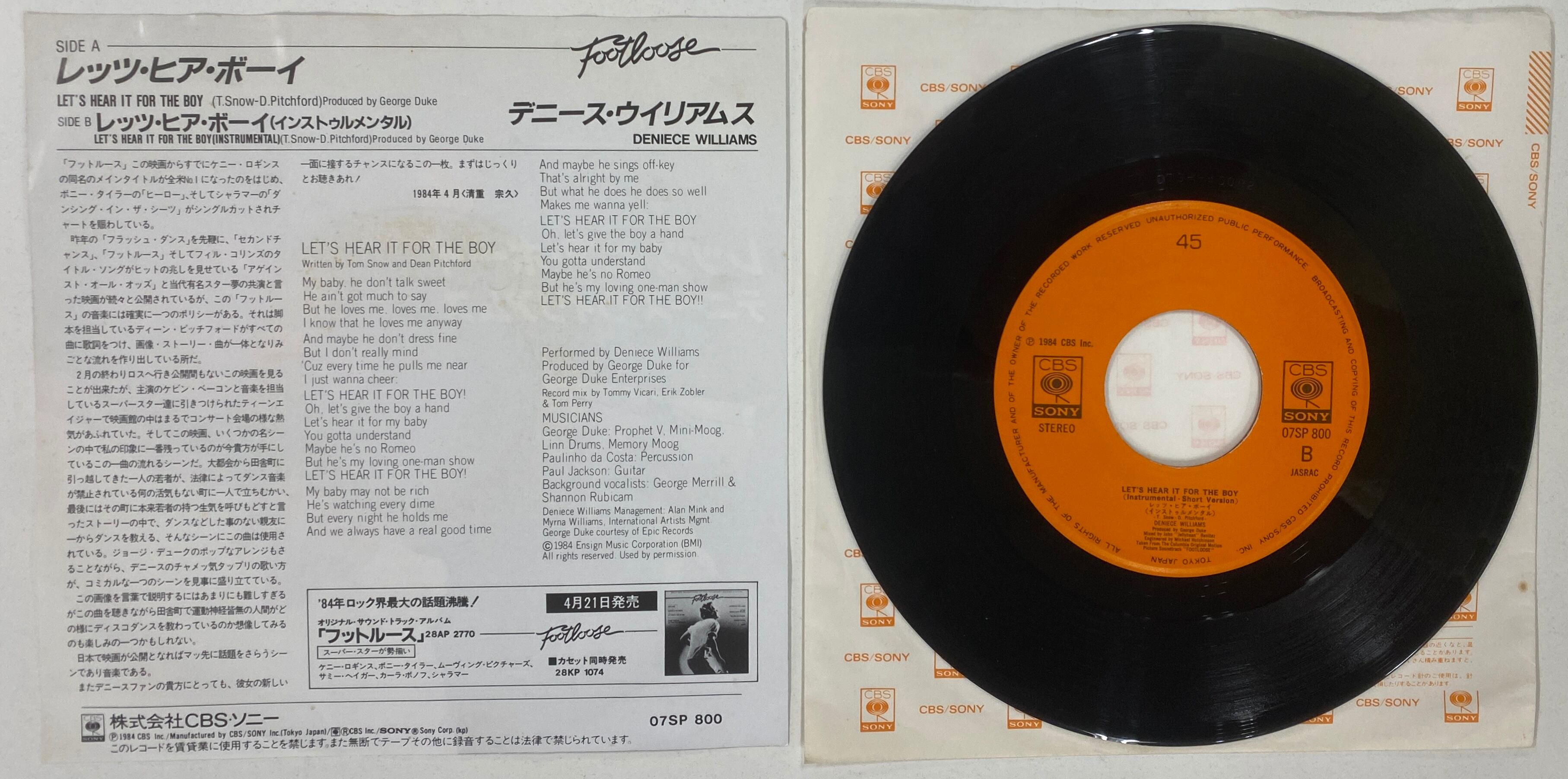 DENIECE WILLIAMS/LET’S HEAR IT FOR THE BOY【日本盤・7インチ】『フットルース』挿入歌●チャート&ディスコでヒット!