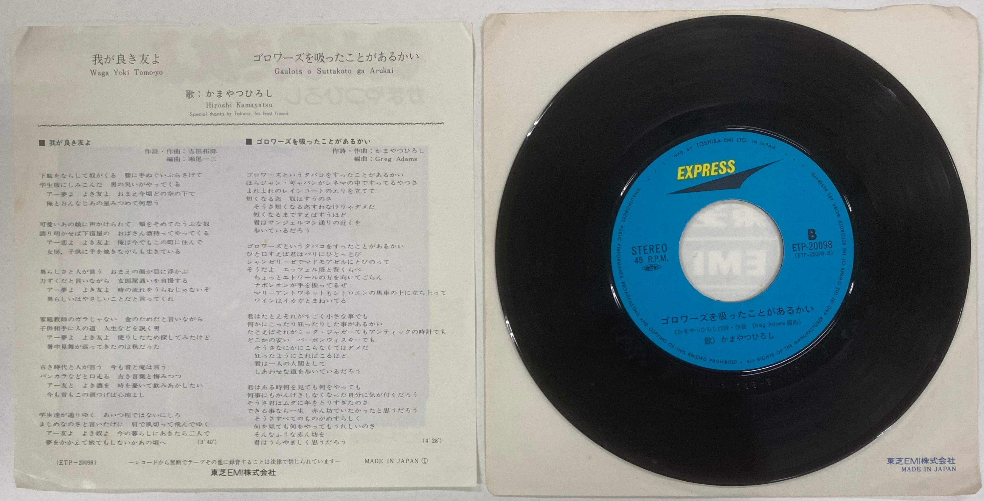 かまやつひろし/ゴロワーズを吸ったことがあるかい(B面)【7インチ】和モノ・レアグルーヴ定番曲! 一家に一枚!