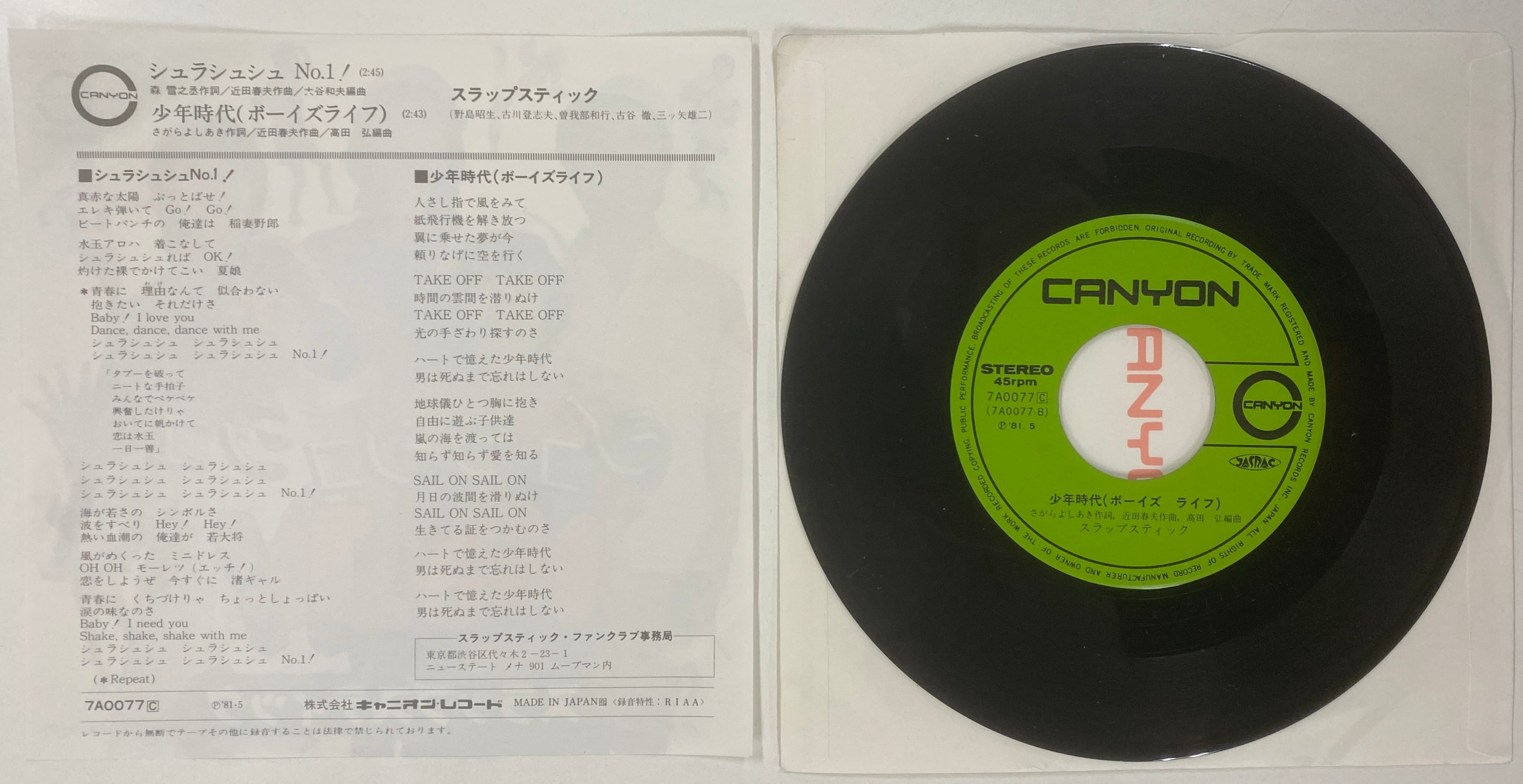 スラップスティック/シュラシュシュNO.1【7インチ】男性声優5人組バンド●森雪之丞作詞・近田春夫作曲 #ノリノリのGS歌謡 #アレコード系