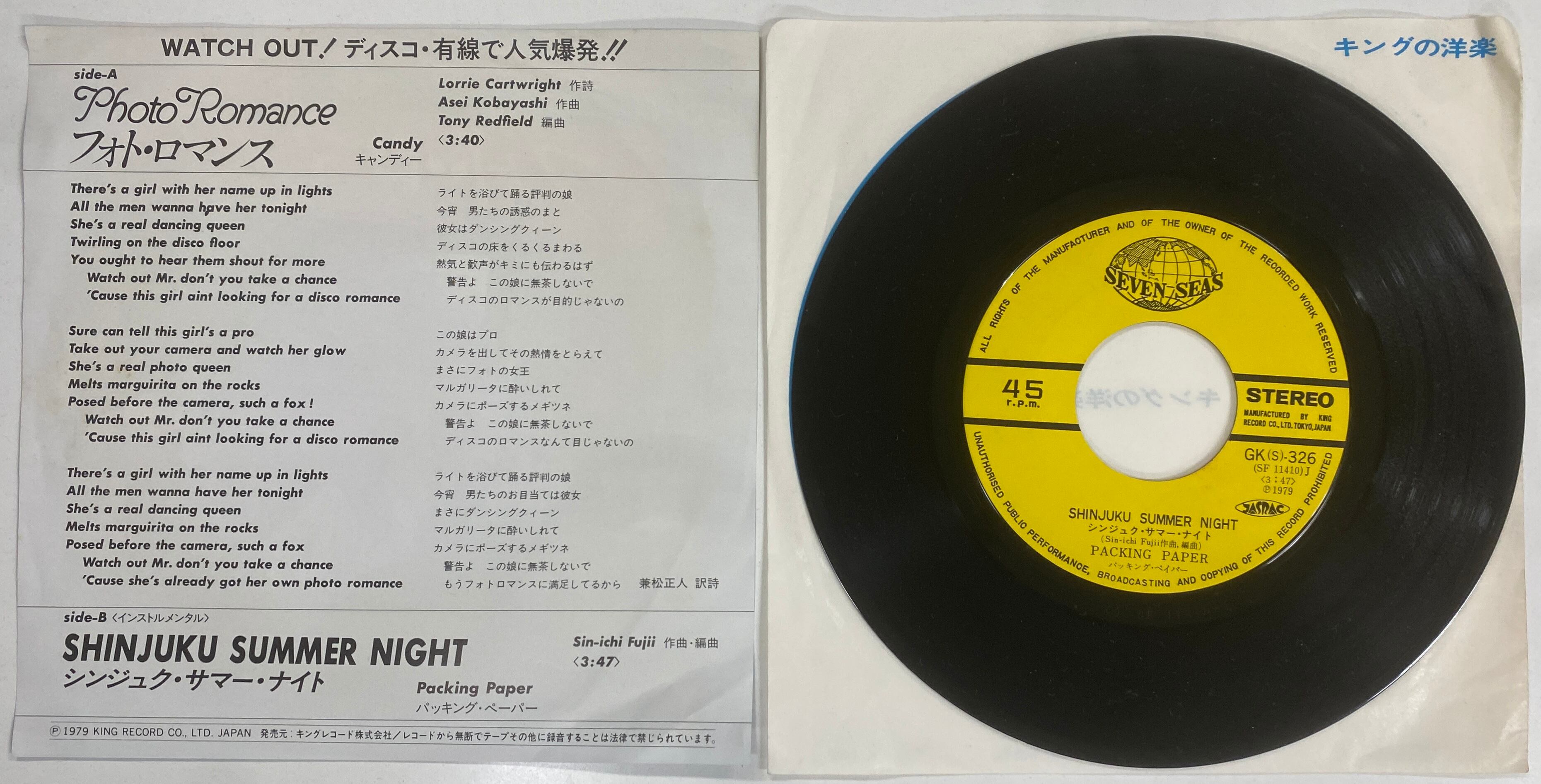 A面CANDY「フォト・ロマンス」B面パッキング・ペーパー「シンジュク・サマー・ナイト」【7インチ】小林亜星作曲の和製ディスコ!両面サイコー!