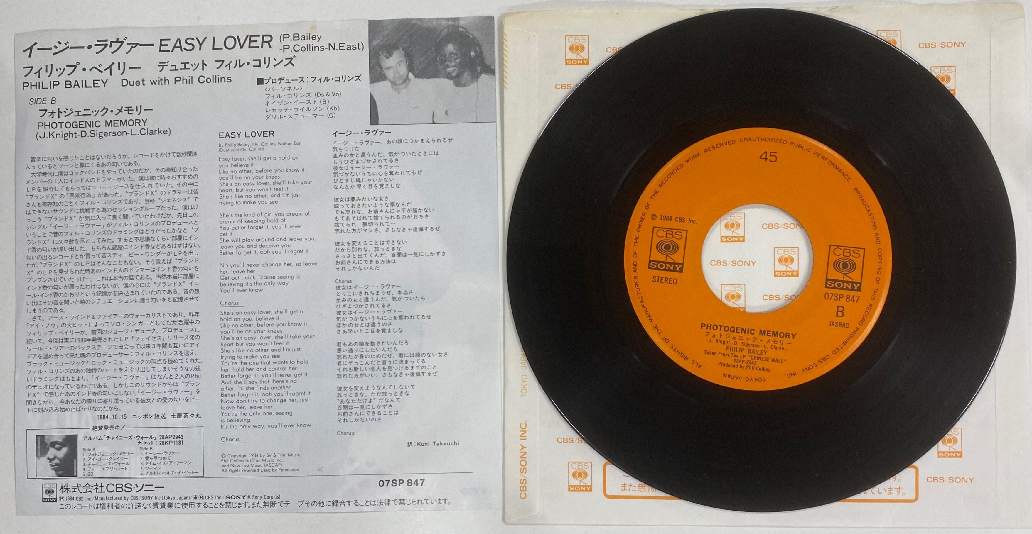 PHILIP BAILEY with PHIL COLLINS/EASY LOVER【日本盤・7インチ】#アース・ウインド&ファイアー #ジェネシス #東亜会館 #新宿ディスコナイト