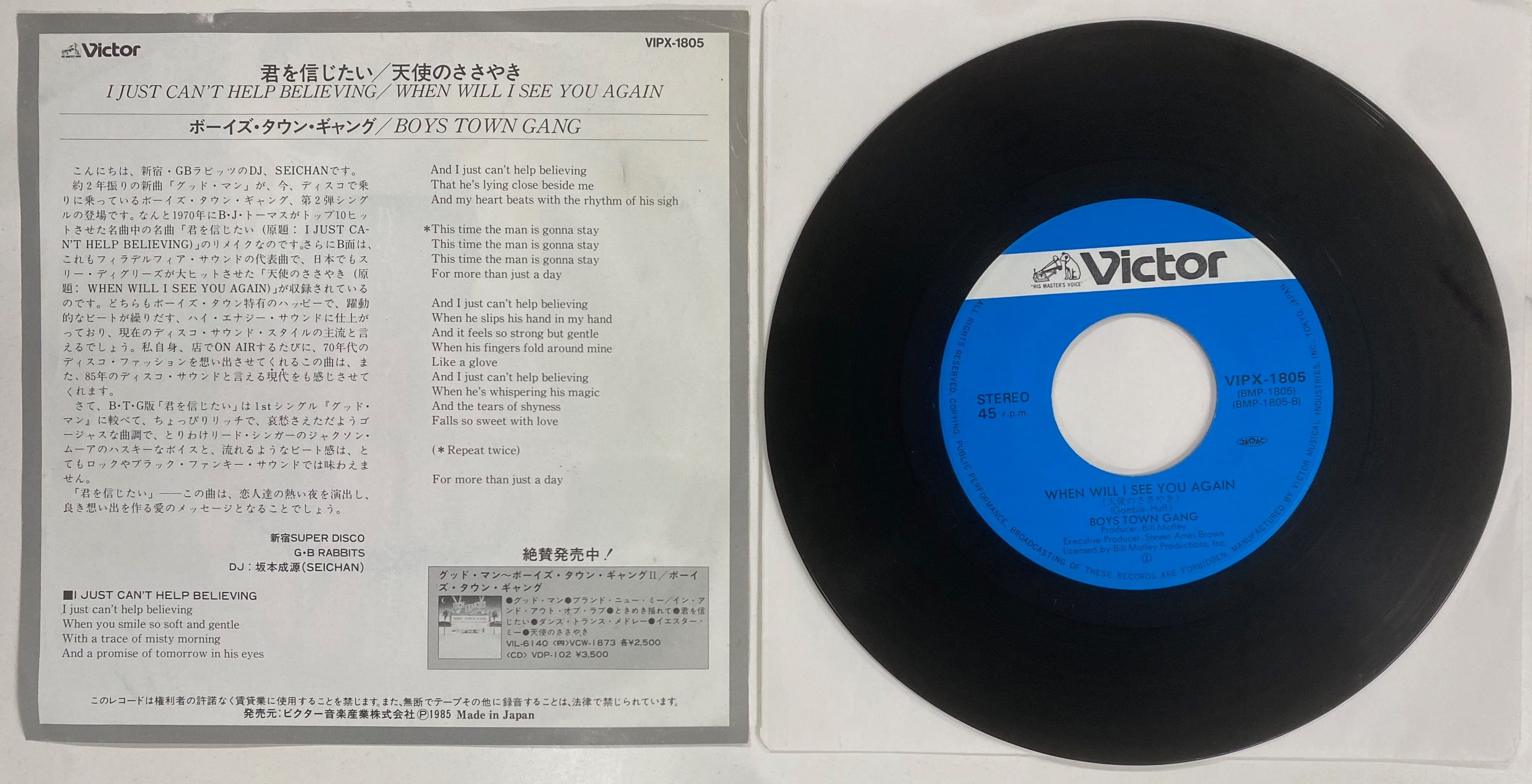 BOYS TOWN GANG/WHEN WILL I SEE YOU AGAIN(B面)【日本盤・7インチ】スリー・ディグリーズ「天使のささやき」ディスコ・カバー!