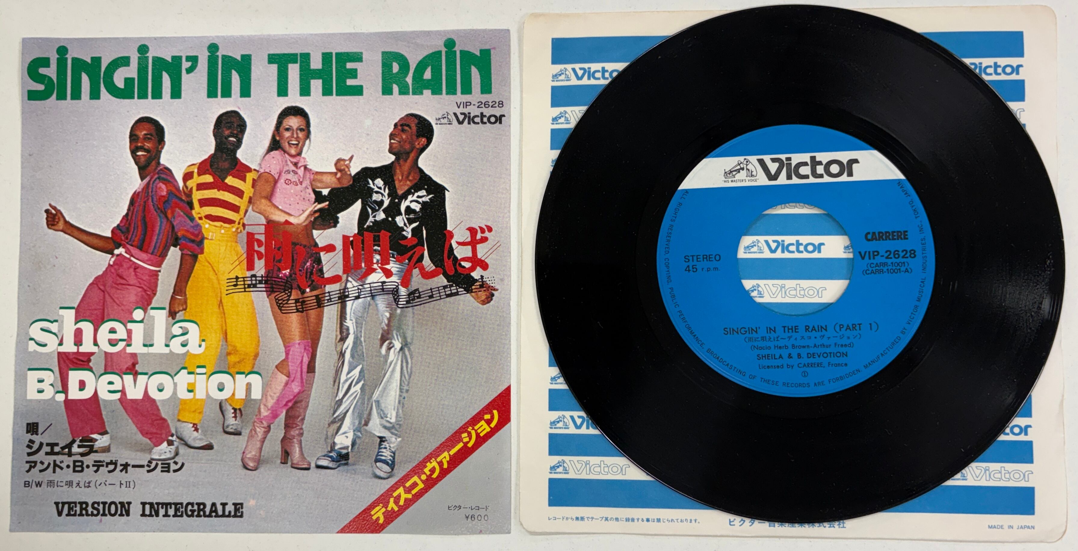 フランス産ディスコ「SHEILA B.DEVOTION/SINGIN’ IN THE RAIN」日本盤。7インチシングルはクリックポストで6〜7枚まで同梱できます(185円)。