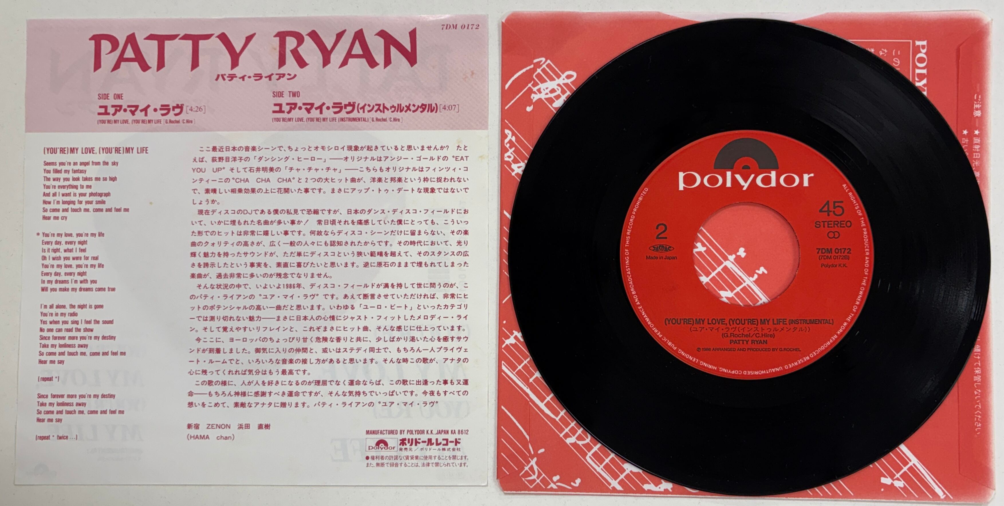 PATTY RYAN/(YOU’RE)MY LOVE,(YOU’RE)MY LIFE【日本盤・7インチ】#東亜会館 #ユーロ #HI-NRG