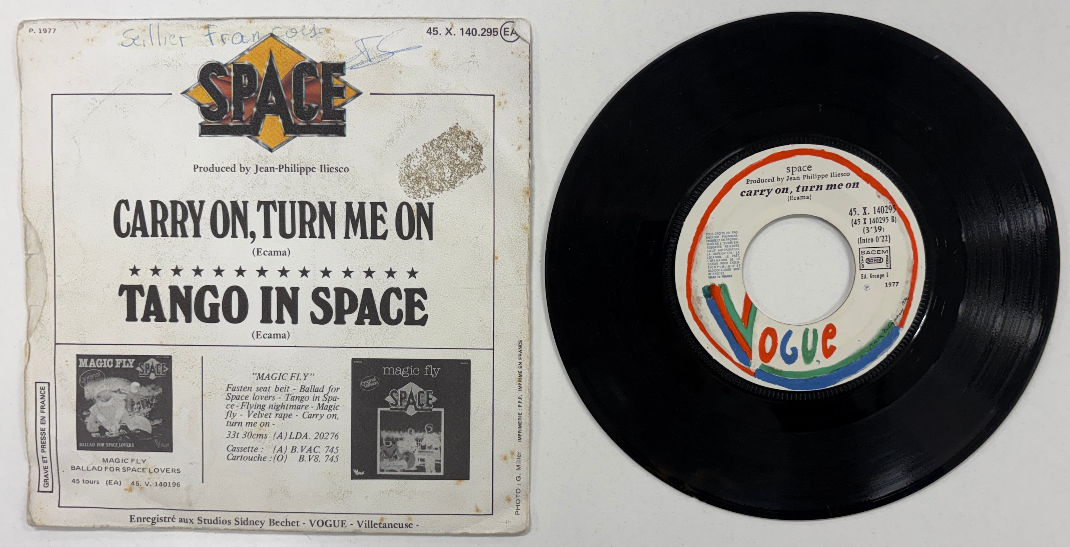 SPACE「TANGO IN SPACE/CARRY ON, TURN ME ON」【フランス盤・7インチ】両面最高!スペース・ディスコ!