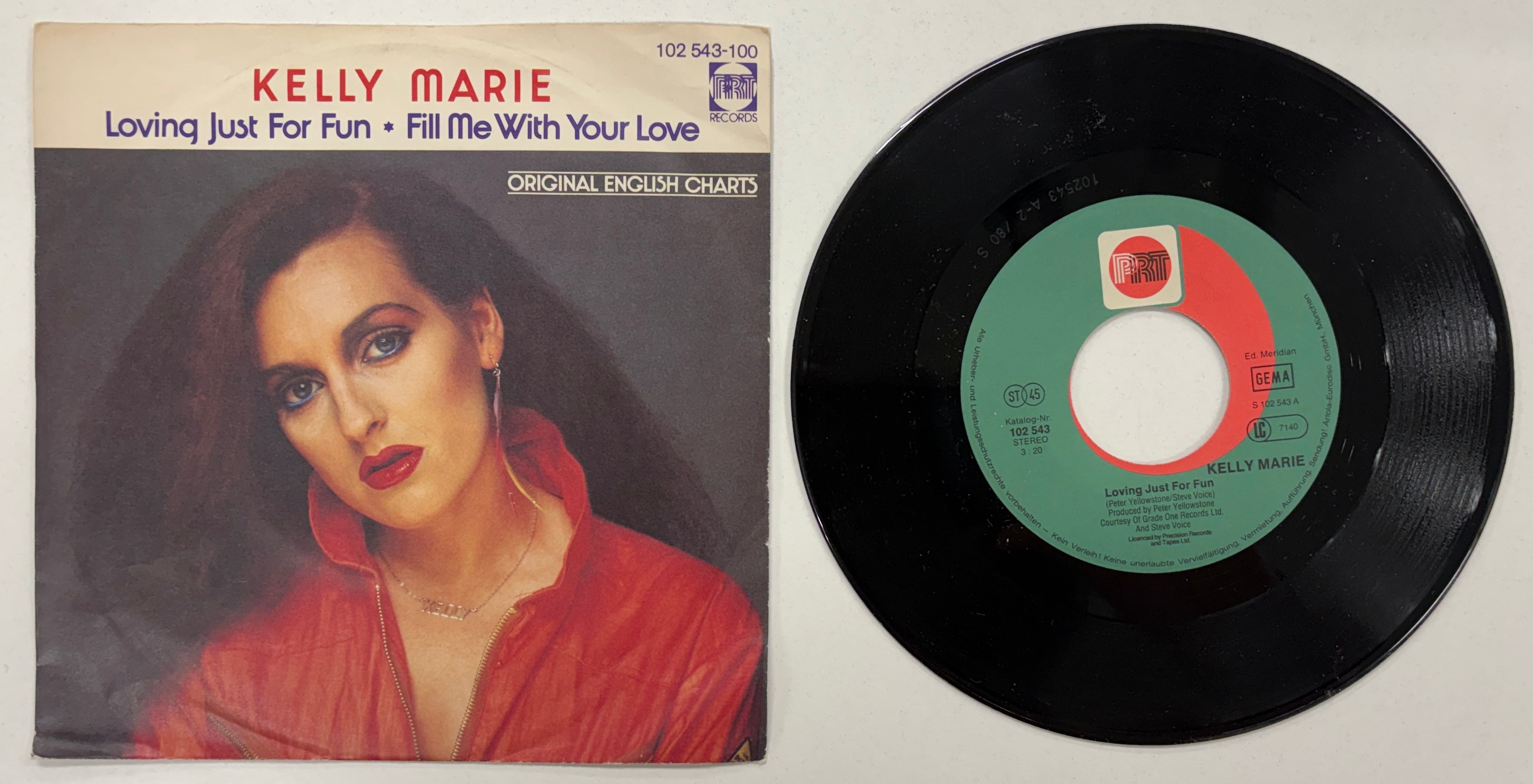 KELLY MARIE「LOVING JUST FOR FUN/FILL ME WITH YOU LOVE」【ドイツ盤・7インチ】両面使えるナイスDISCO!