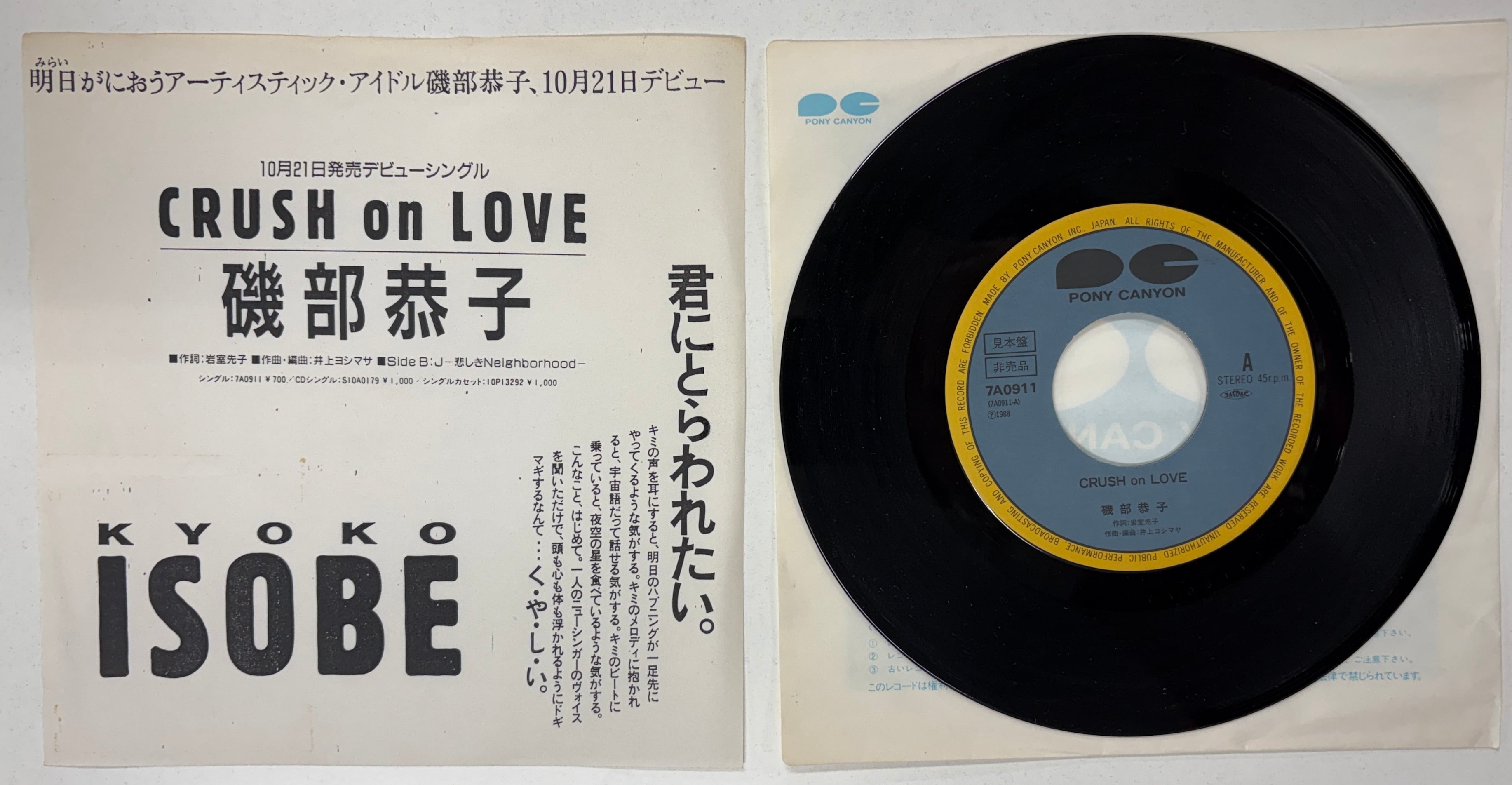 磯部恭子/CRUSH on LOVE【7インチ】マイナーなユーロビート歌謡●サンプル盤