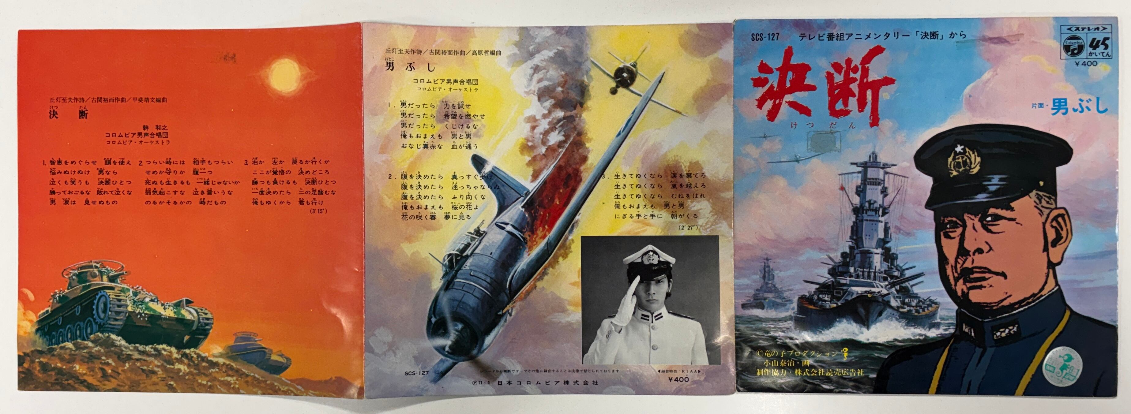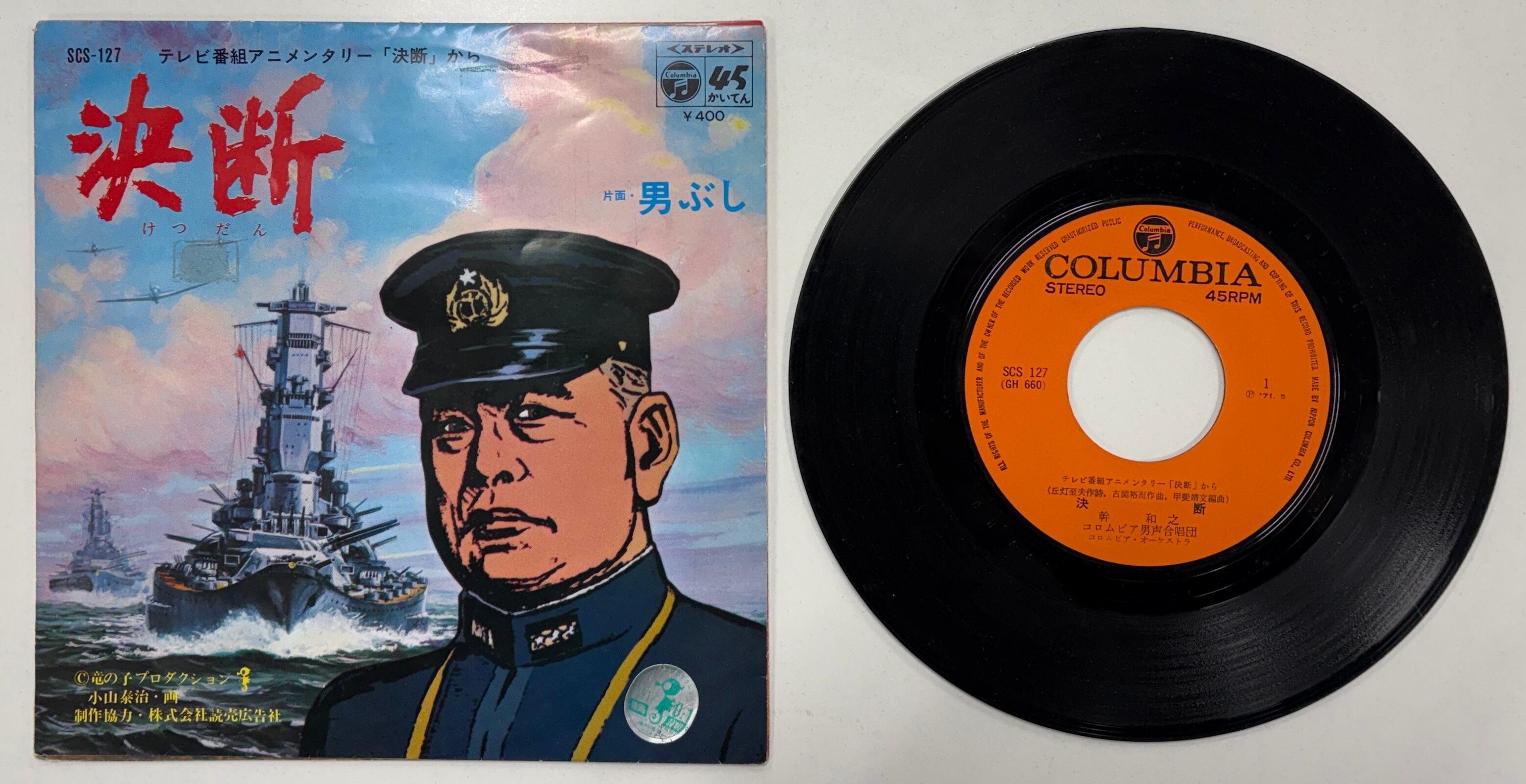 竜の子プロダクション製作テレビ・アニメンタリー「決断」OPテーマ曲。7インチシングルはクリックポストで6〜7枚まで同梱できます(185円)。