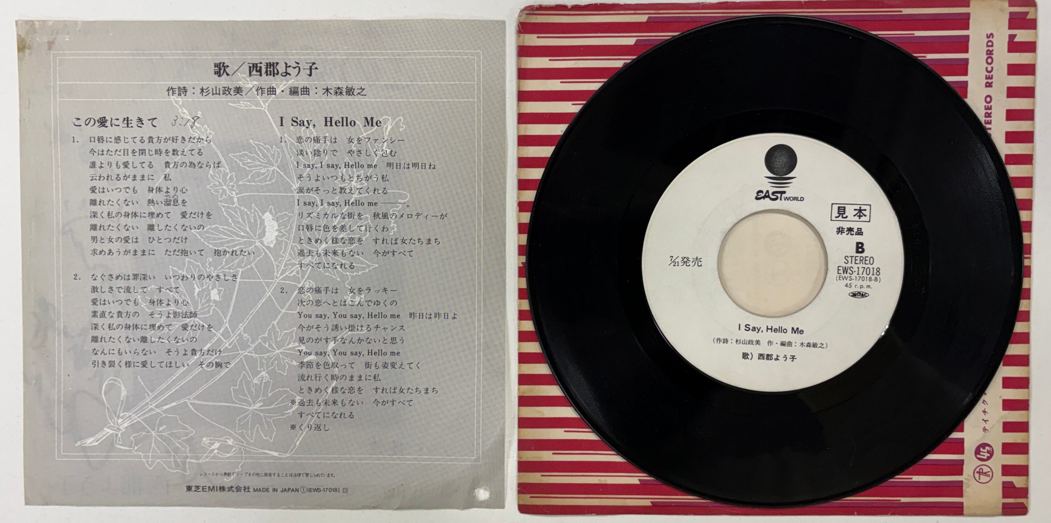 西郡よう子/I SAY, HELLO ME(B面)【7インチ】ディスコ歌謡●見本盤
