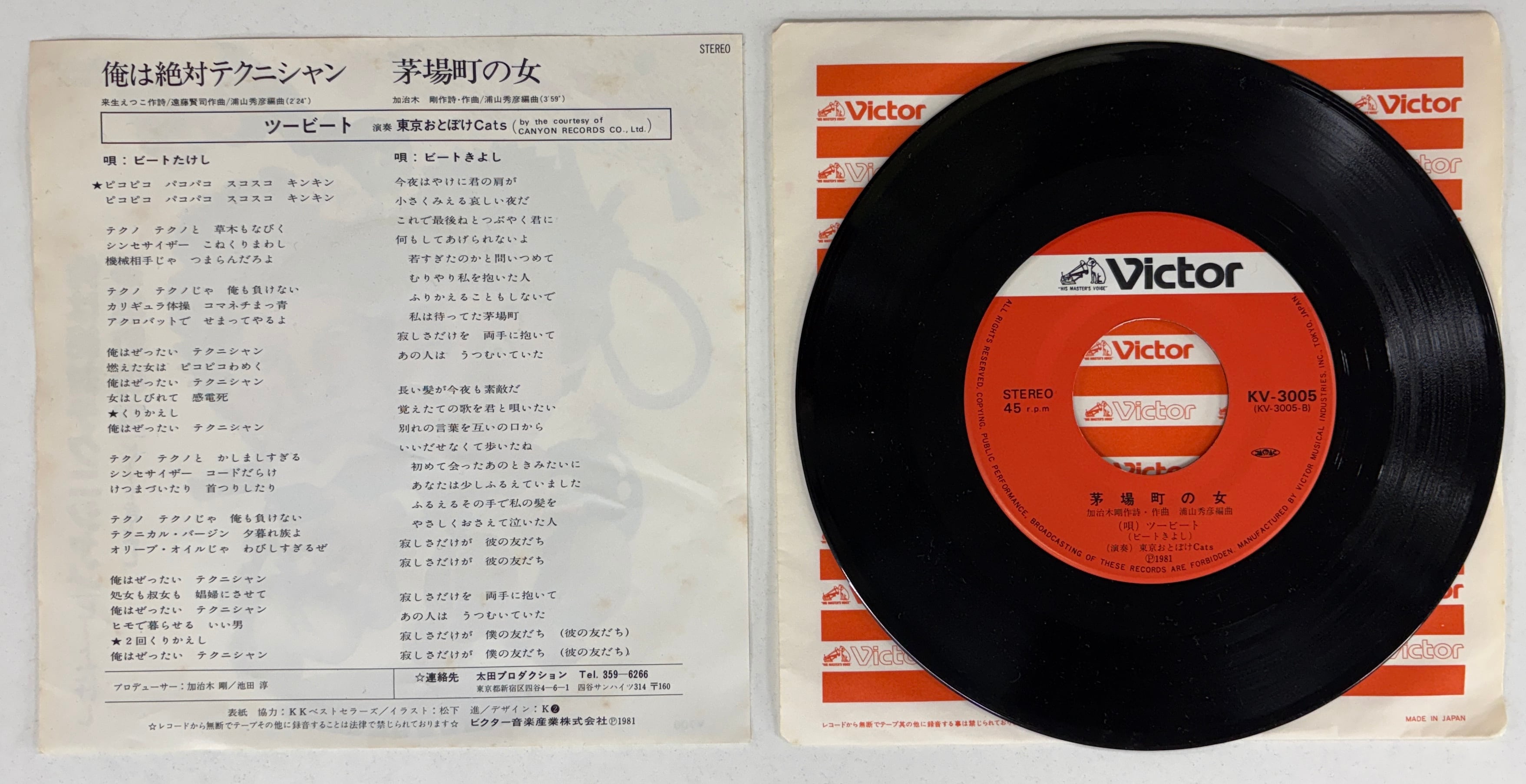 ツービート(ビートたけし)/俺は絶対テクニシャン【7インチ】来生えつこ作詞・遠藤賢司作曲 #アレコード系 #テクノ歌謡