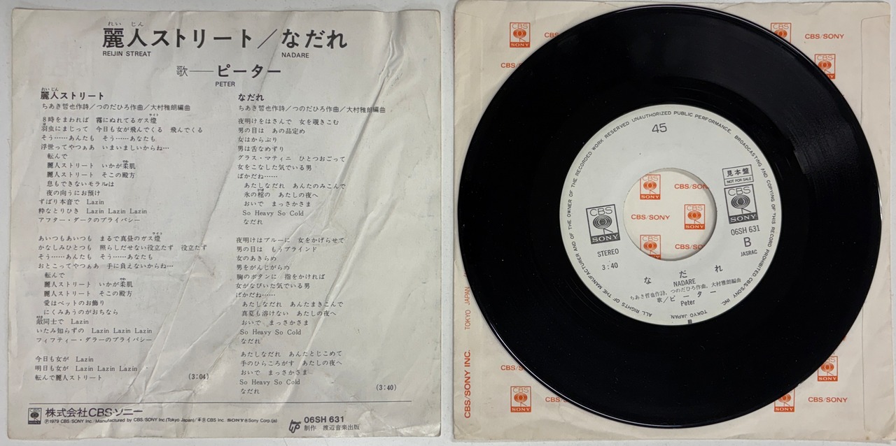 ピーター/麗人ストリート【7インチ】ディスコ歌謡!和モノDJ人気盤●見本盤