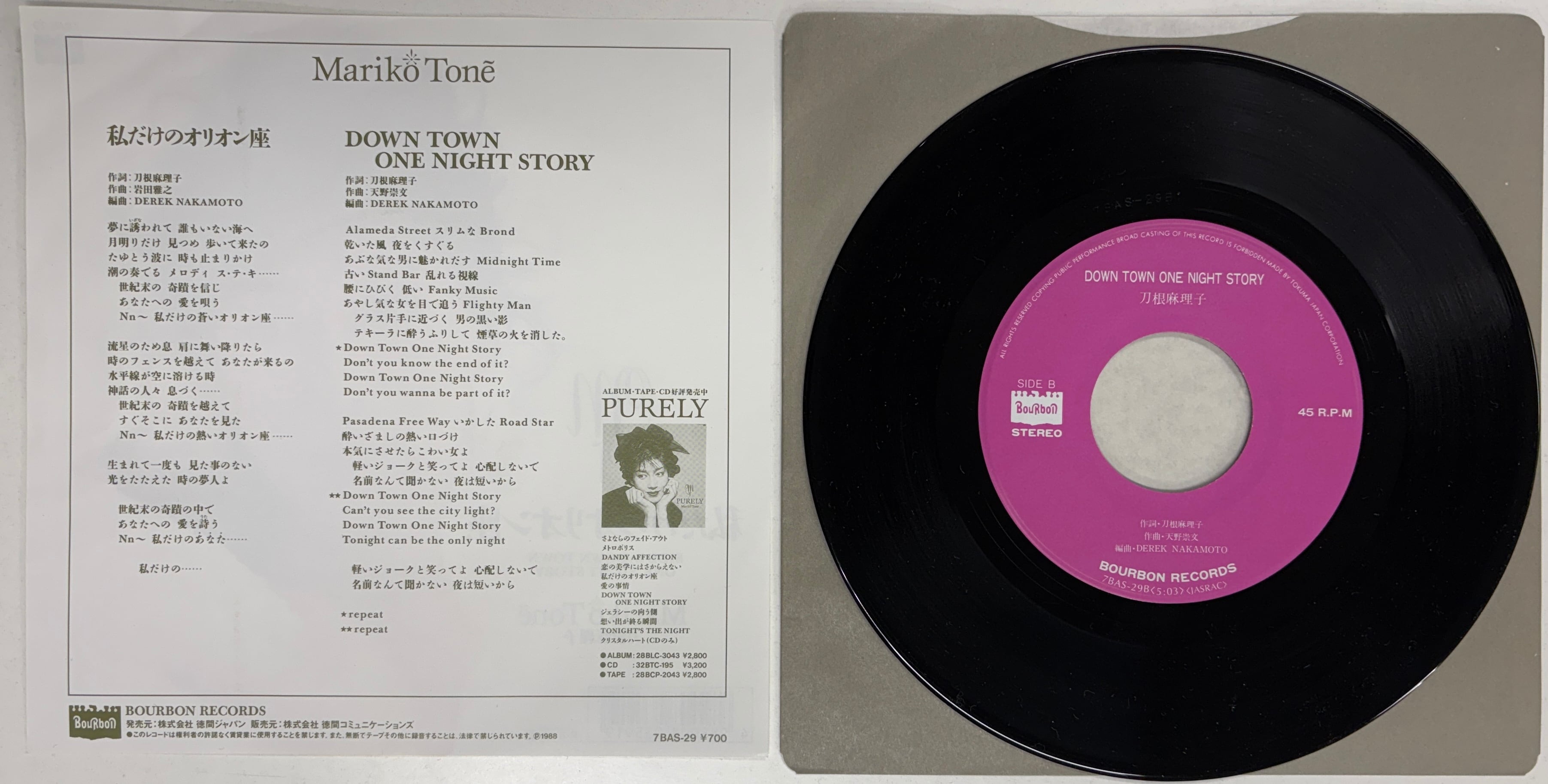 刀根麻理子/DOWN TOWN ONE NIGHT STORY(B面)【7インチ】#FUNK #ブギー #シティ・ポップ