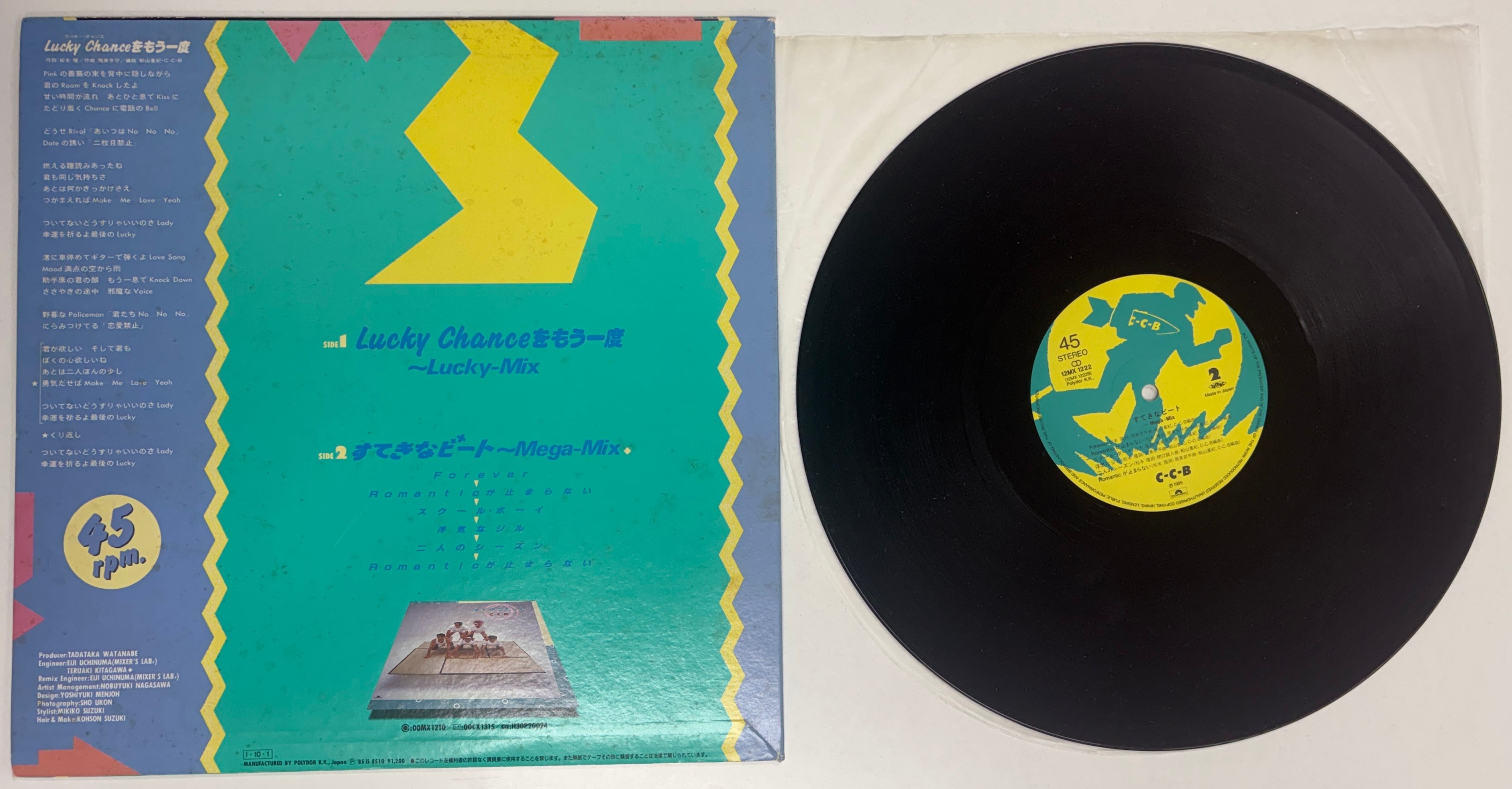 CCB「LUCKY CHANCEをもう一度」12インチシングル。B面には「ROMANTICが止まらない」「スクール・ボーイ」などヒット曲メドレー「すてきなビート〜MEGA MIX」収録。佐川急便の80サイズでお送りします。