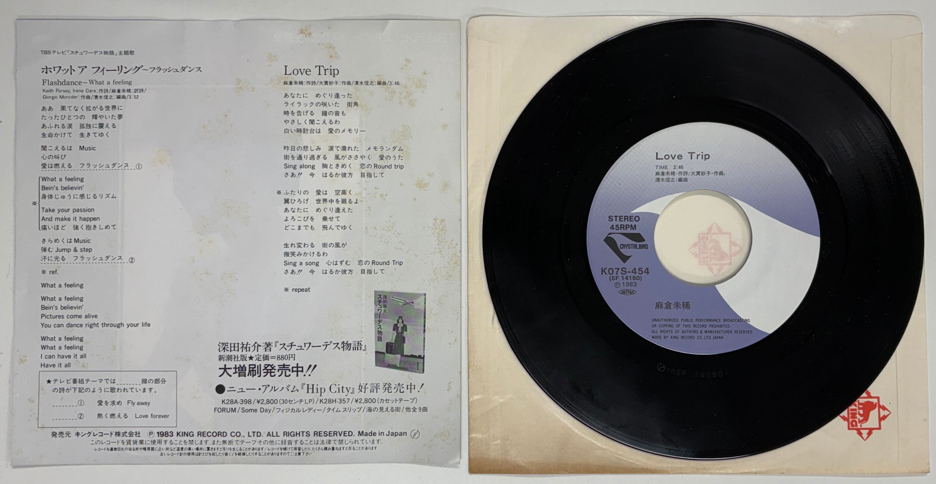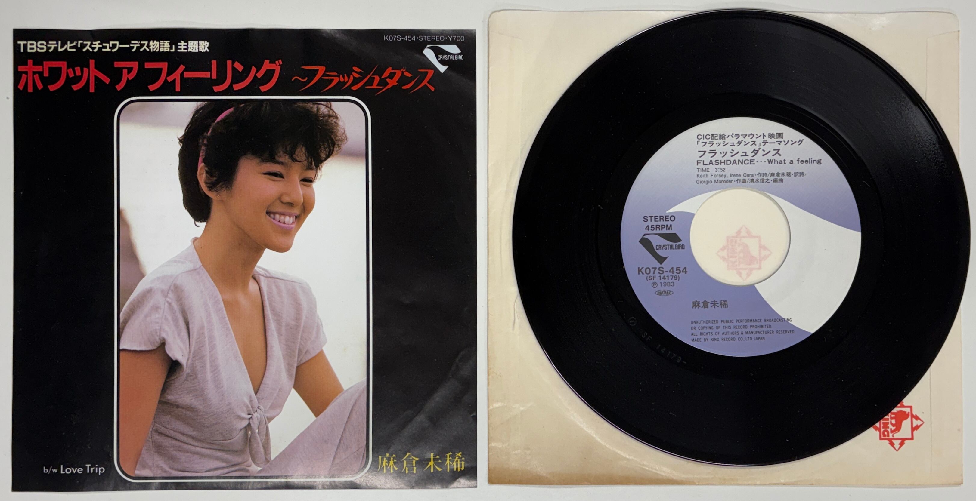 80年代のディスコに大きな影響を与えた映画『フラッシュ・ダンス』(歌唱:アイリーン・キャラ)の主題歌を日本語でカバー、それが『スチュワーデス物語』の主題歌となりました。日本人で他にも畑中葉子、山本リンダ、宮本典子などがカバーしています。7インチシングルはクリックポストで6〜7枚まで同梱できます(185円)。