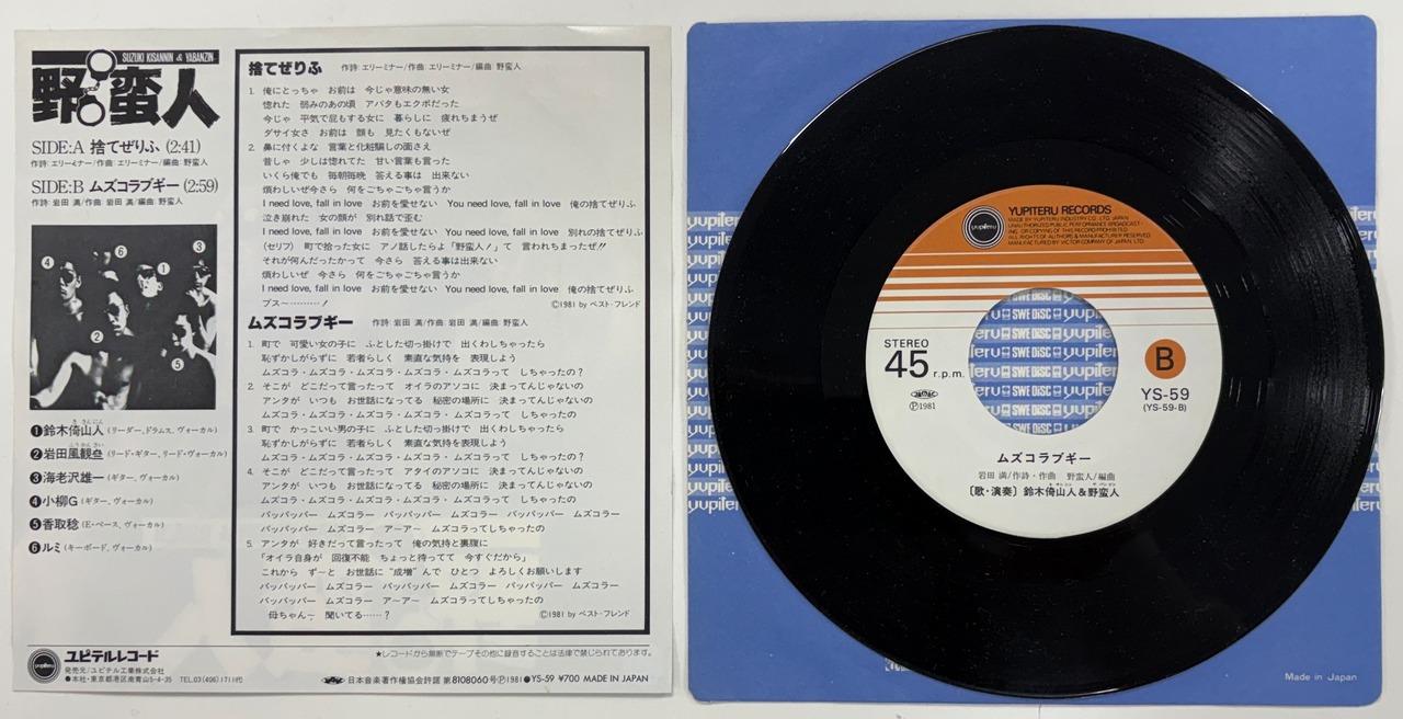 鈴木倚山人&野蛮人「捨てぜりふ/ムズコラブギー」【7インチ】放送禁止のコミックロック