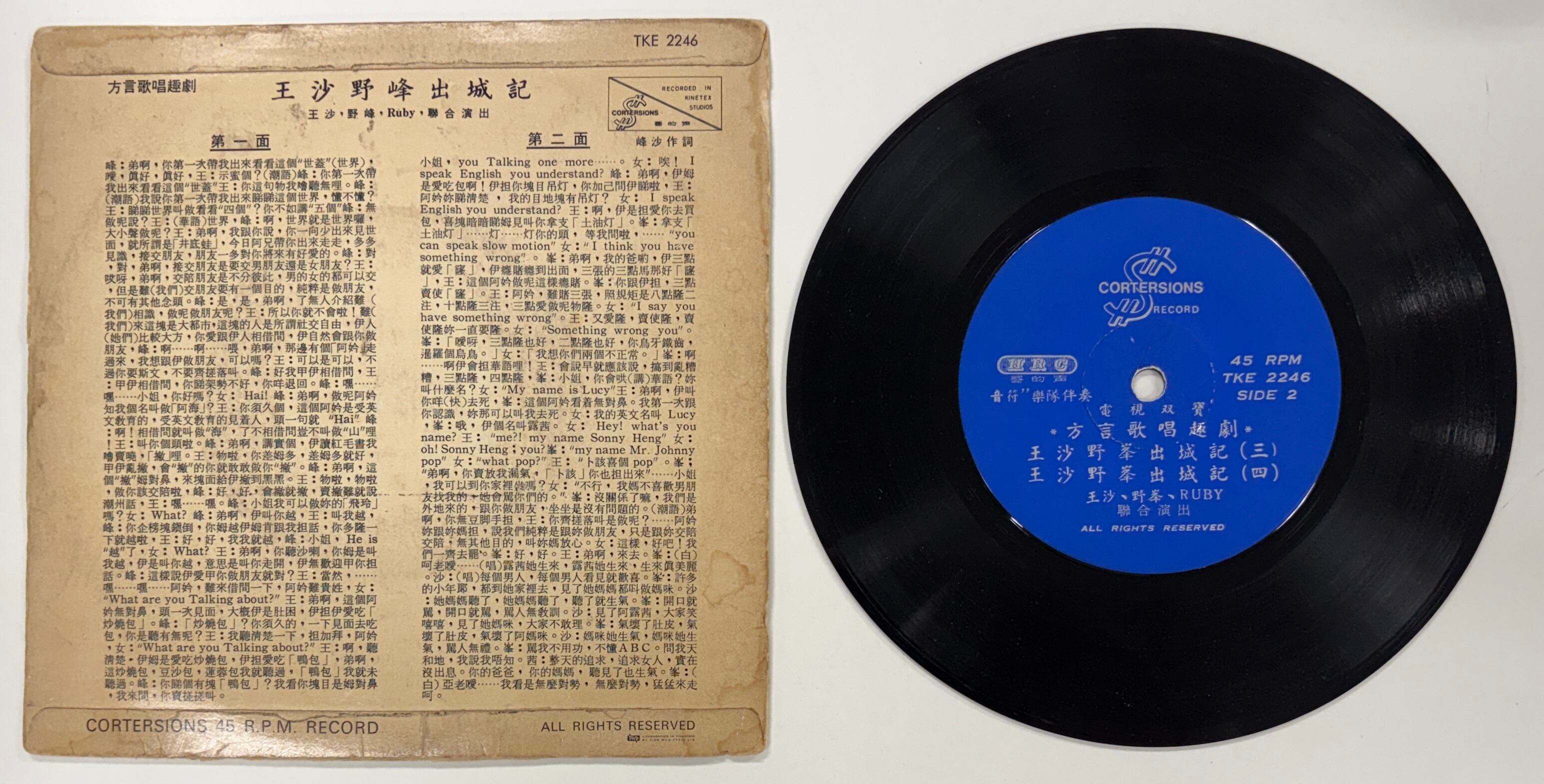 王沙・野峰/出城記【7インチ】シンガポール盤●ミュージカルコメディ